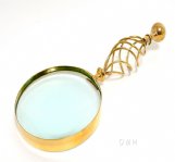 Brass Big Magnifier Glass W/ Wooden Base